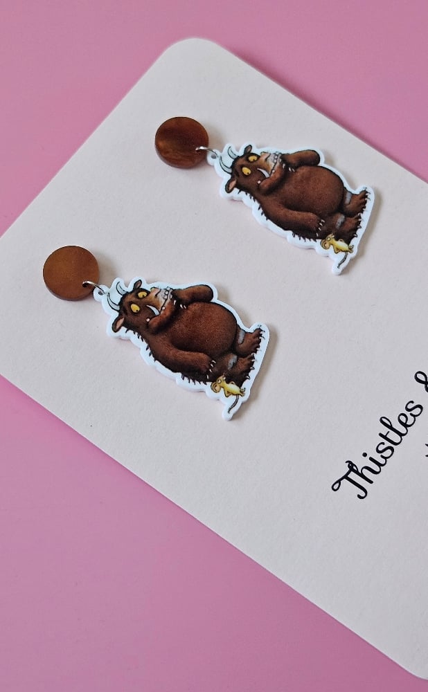 With their whimsical design, these earrings bring the Gruffalo to life, complete with his terrible tusks and knobbly knees.