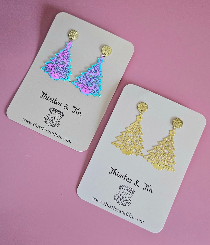 Go big and make a statement with these fun Christmas tree dangles. Laser cut filigree details make these dangles classy and beautiful.